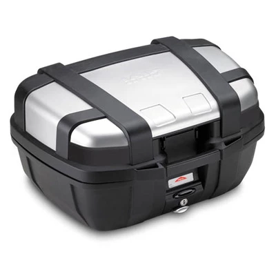 52 litre top-case Givi black with aluminium finish. Capacious topcase with Monokey fixing system that completes the Trekker range. It allows the storage of two modular helmets. Made of polymers reinforced with glass fibers, it ensures high structural rigidity. It has a cover in anodized aluminium to resist weathering.