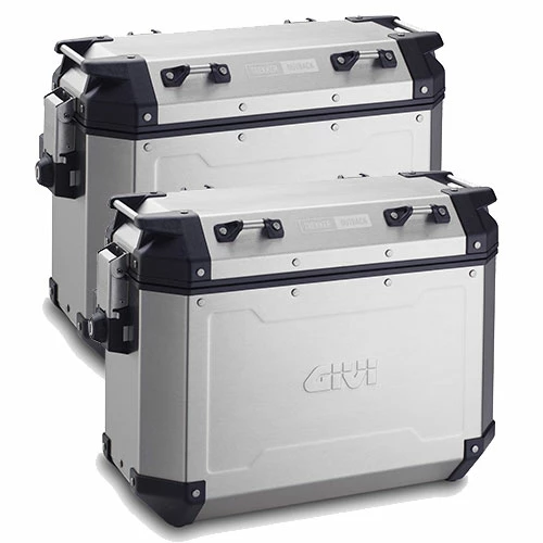 Set side cases trekker outback 37lt. The very best of motorcycle hard bags. Entirely in light alloy. Strengthened with reinforced angles and a solid system security lock. Totally impermeable to water and unassailable to atmospheric agents. In other words maximum security for the luggage.
