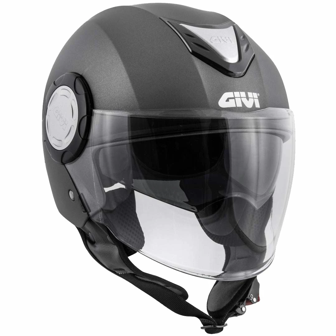 Jet helmet in thermoplastic material.