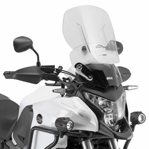 Specific sliding wind-screen transparent, Airflow for Honda Crosstourer 1200 (12>13). Size: Maximum height 53 cm (12 cm of extension) width 41 cm. Complete with specific fitting kit. To be mounted instead of the original screen.